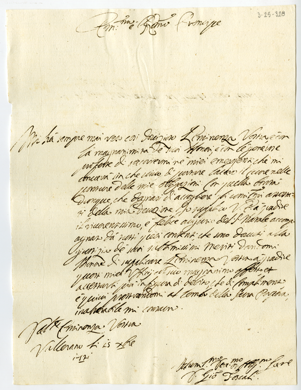 Lettera di Giovanni Foscali al cardinale Annibale Albani (1721 dicembre 15)