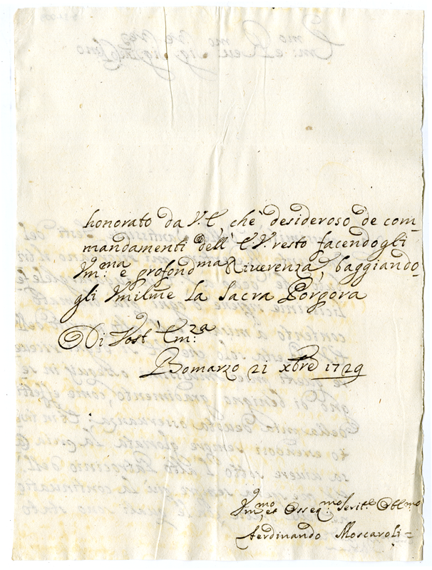Lettera di Ferdinando Moscaroli al cardinale Annibale Albani (1729 dicembre 21)