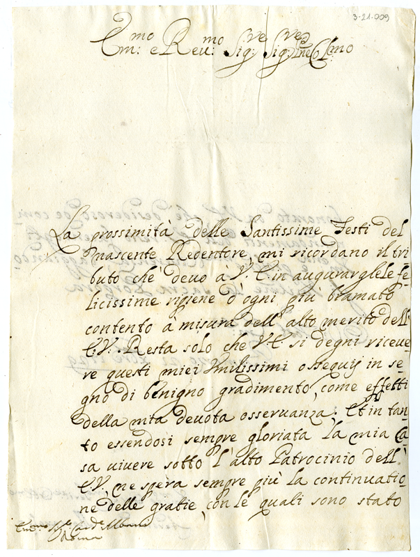 Lettera di Ferdinando Moscaroli al cardinale Annibale Albani (1729 dicembre 21)