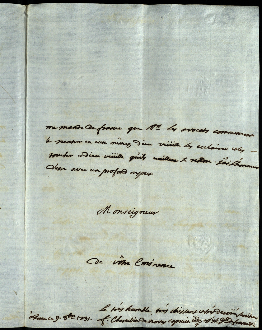 Lettere al cardinale di S. Clemente. 1730 - 1731