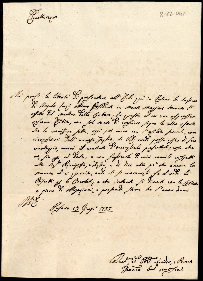 Lettere ricevute in Urbino nella permanenza in Urbino nei mesi di maggio, giugno e luglio 1777