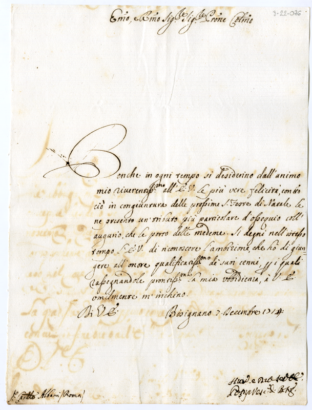 Lettera di Pompilio vescovo di Bisignano al cardinale Annibale Albani (1714 dicembre 7)