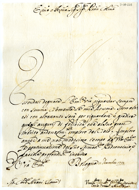 Lettera di Carlo Francesco Airoldi al cardinale Annibale Albani (1712 dicembre 8)