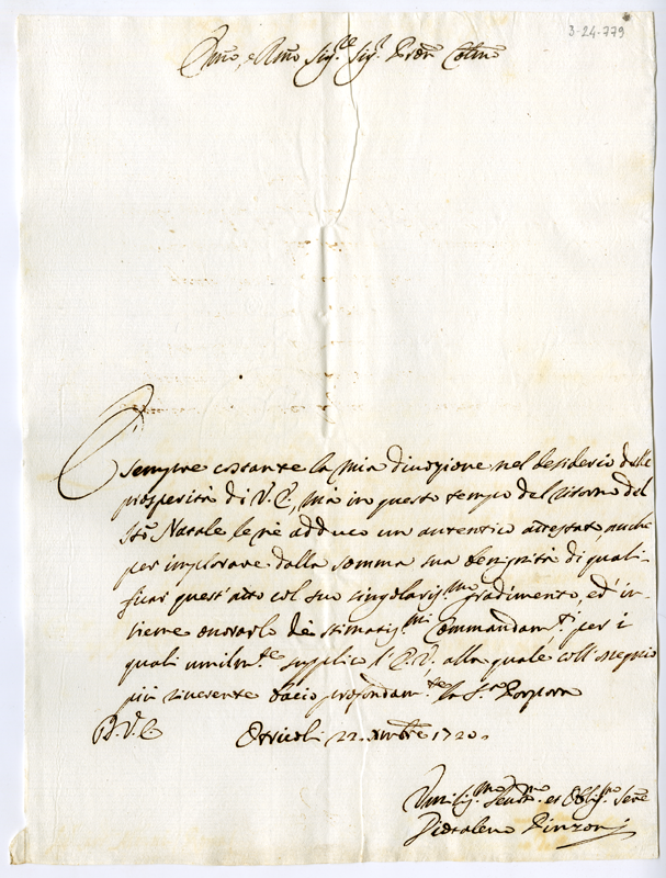 Lettera di Diotaleno Pinzoni al cardinale Annibale Albani (1720 dicembre 22)