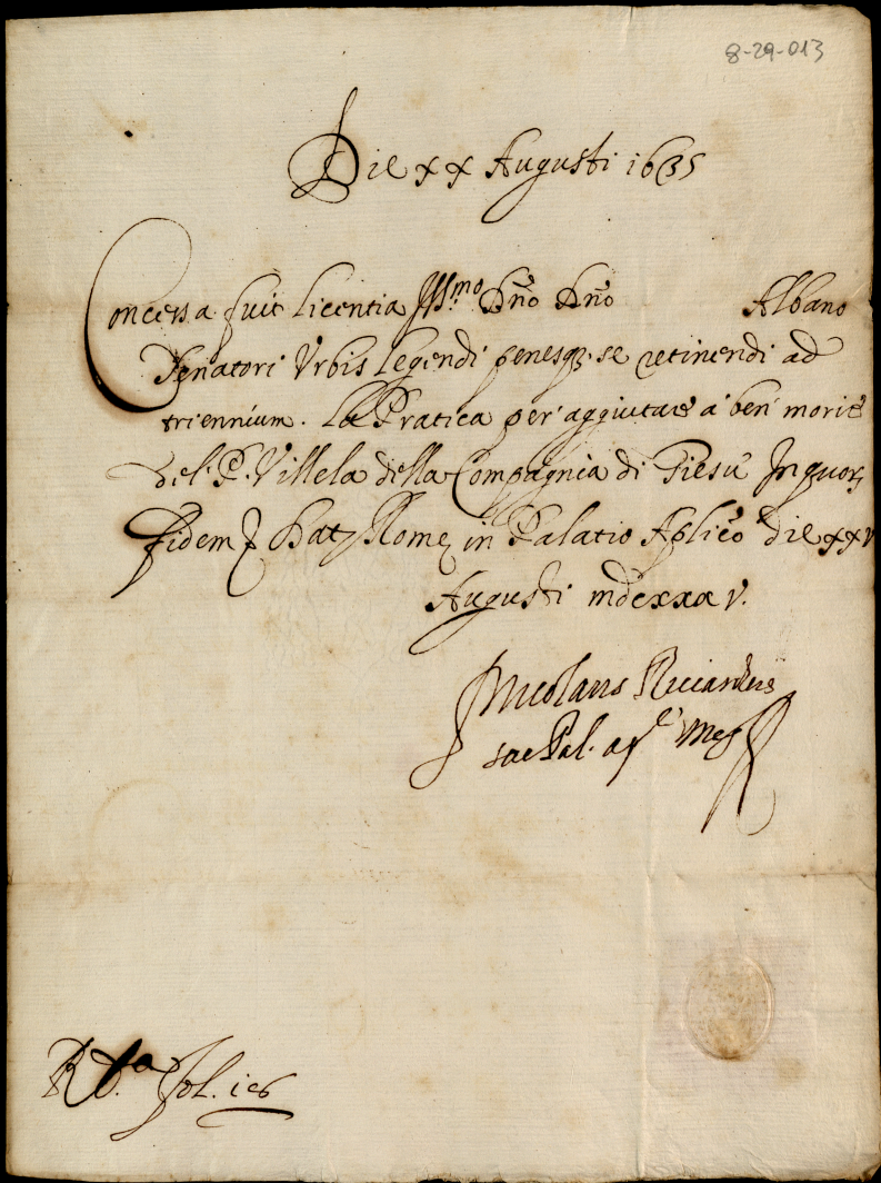 Figliolanze di religiosi, patenti diverse, famigliarità, licenze e prerogative a diversi dell'eccellentissima Casa Albani