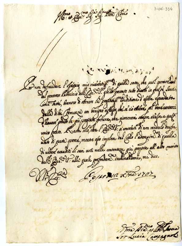 Lettera di Lucia Campagnoli ad Annibale Albani (1707 dicembre 12)