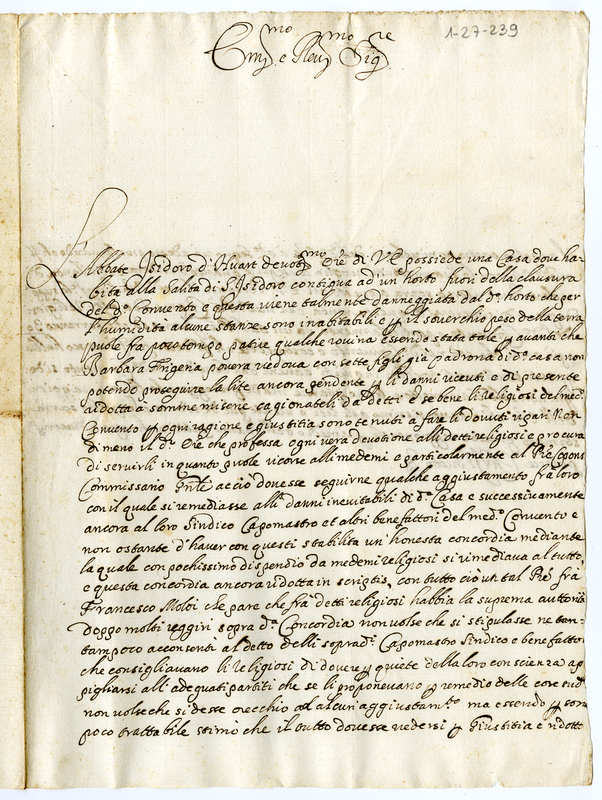Lettera dell'abate Isodoro d'Huart ad un Cardinale (1600-1700)