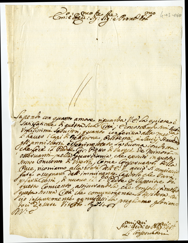 Lettera dei Conservatori di Viterbo al cardinale Annibale Albani (1716 gennaio)