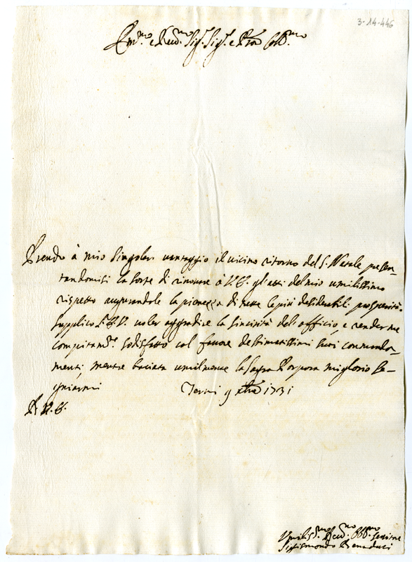 Lettera di Sigismondo Benaduci al cardinale Annibale Albani (1731 dicembre 9)