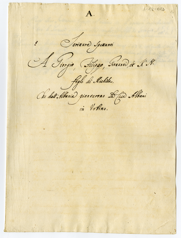 Scritture spettanti a Giorgio, Filippo, Giovanni, et N. N. figli di Michele, che dall'Albania piantarono la Casa Albani in Urbino