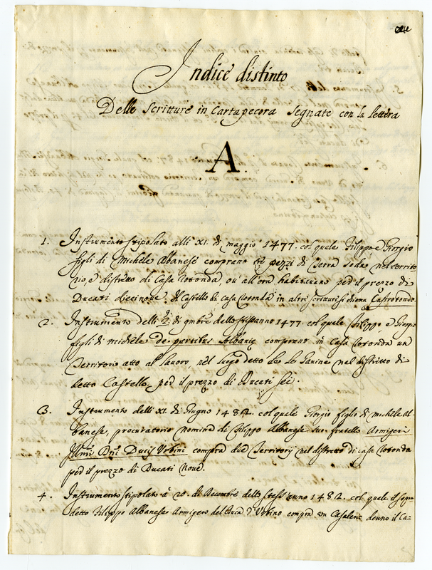 | dc.description | Indice distinto delle scritture in cartapecora segnate con la lettera A | |