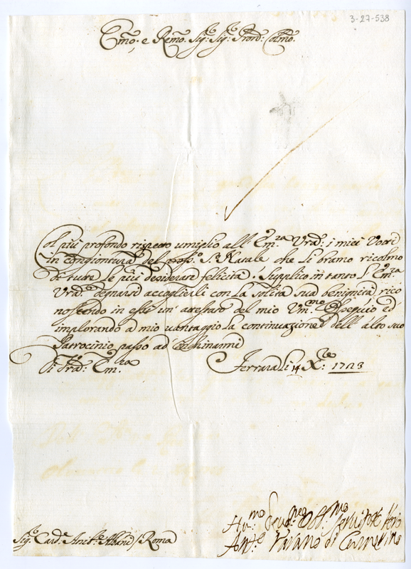 Lettera di Antonio Varano di Camerino al cardinale Annibale Albani (1723 dicembre 14)