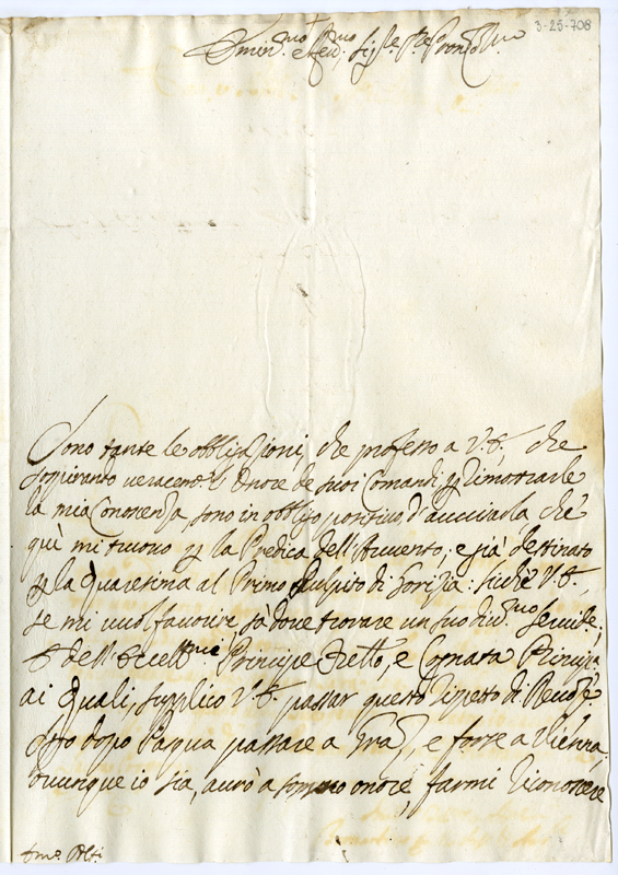 Lettera di fra Anton Felice da Siena cappuccino al cardinale Annibale Albani (1721 dicembre 10)