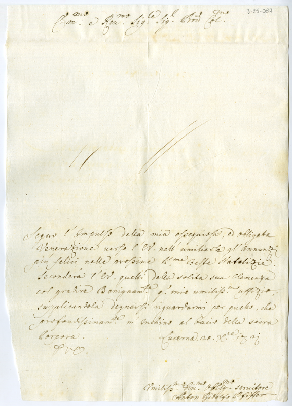 Lettera di Anton Ridolfo Pfiffer al cardinale Annibale Albani (1721 dicembre 20)