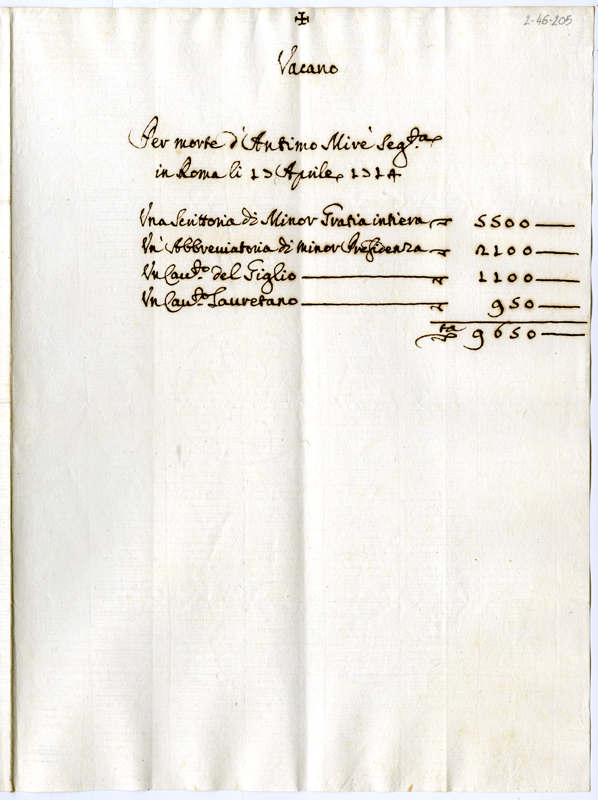 Benefici vacanti per morte di Antimo Mirè (1714 aprile 17)