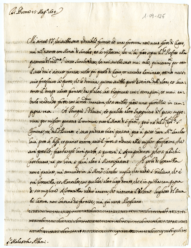 Lettera del cardinale Barberini Francesco senior a Malatesta Albani (1644 maggio 25)