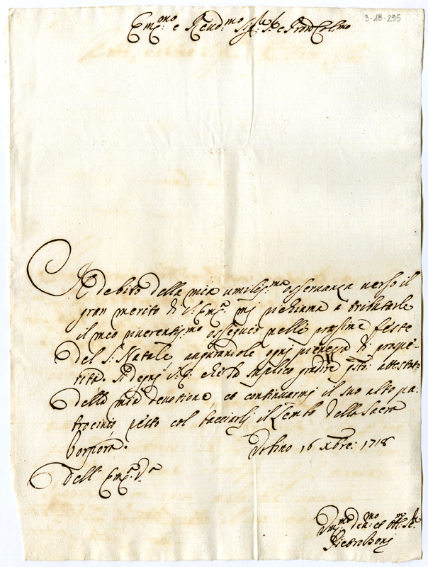 Lettera di Pietro Boni ad Annibale Albani (1718 dicembre 16)