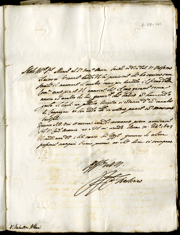 Lettera del cardinale Barberini Francesco senior a Malatesta Albani (1643 gennaio 10)