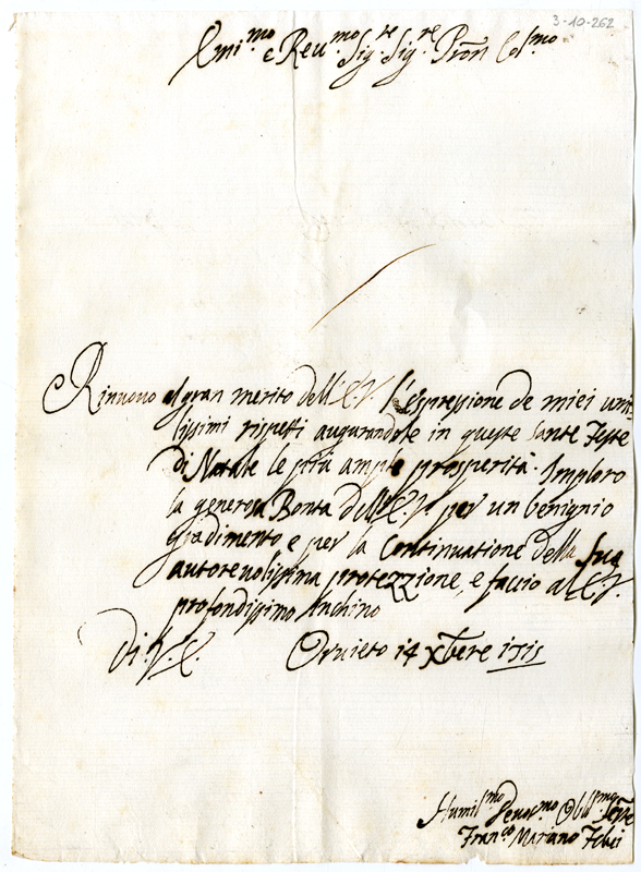 Lettera di Francesco Mariano Felei al cardinale Annibale Albani (1715 dicembre 14)