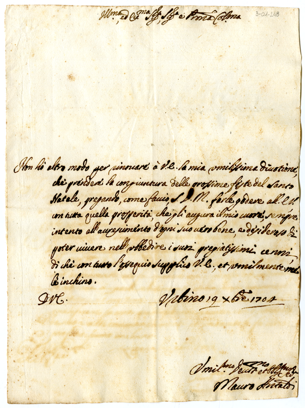 Lettera di Mauro Antaldi ad Annibale Albani (1704 dicembre 19)