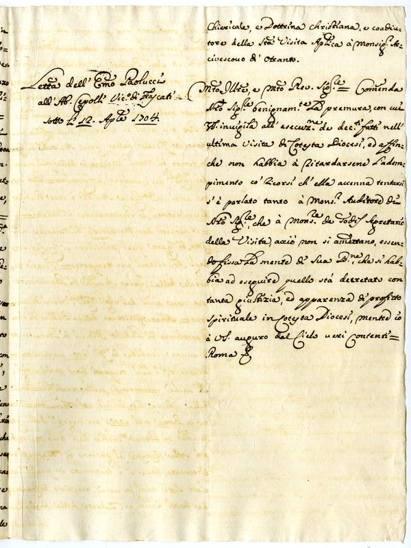 Copia di memoriale sull'abate Tommaso Antonio Cepolli, suoi requisiti e copia di lettera del cardinale Paolucci (1704 aprile 12)