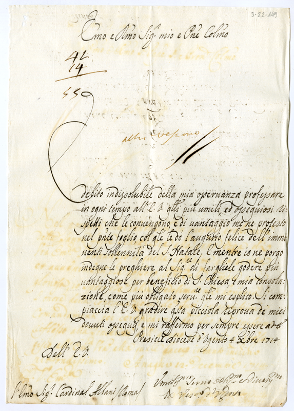 Lettera del vescovo di Ugento al cardinale Annibale Albani (1714 dicembre 4)
