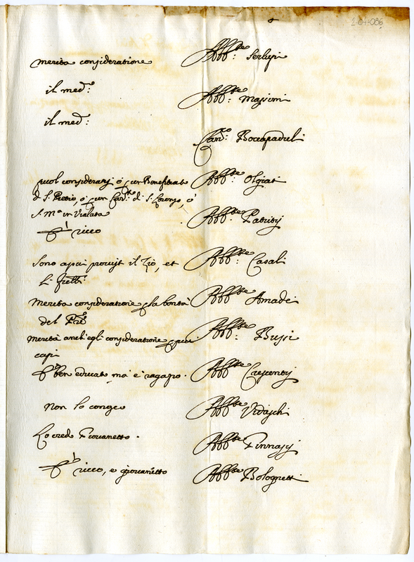 Elenco di nominativi con breve nota (1709)