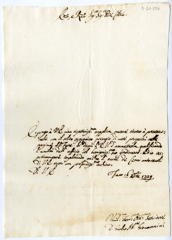 Lettera di Giulio Giovannini al cardinale Annibale Albani (1729 dicembre 16)