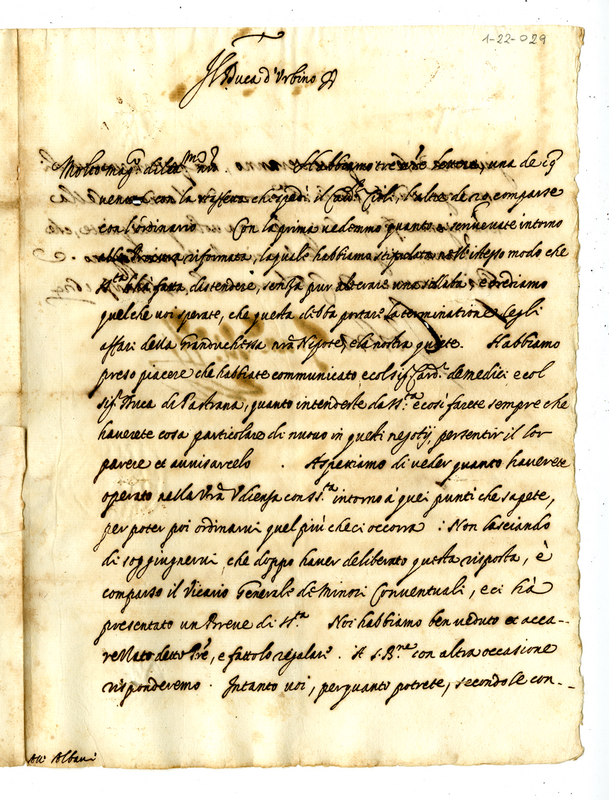 Lettera di Francesco Maria II duca di Urbino a Orazio Albani (1624 marzo 25)