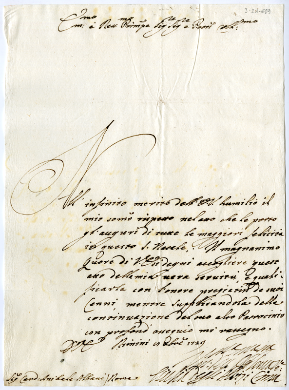 Lettera di Giulia degli Albizi Cima al cardinale Annibale Albani (1729 dicembre 8)