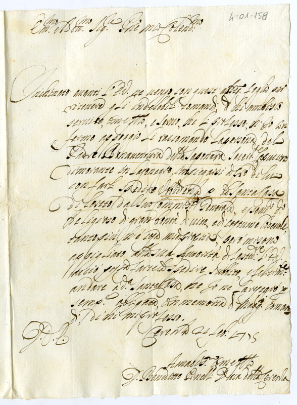 Lettera di Benedetto Pinelli duca della Cerenza al Cardinale Annibale Albani (1715 febbraio 21)