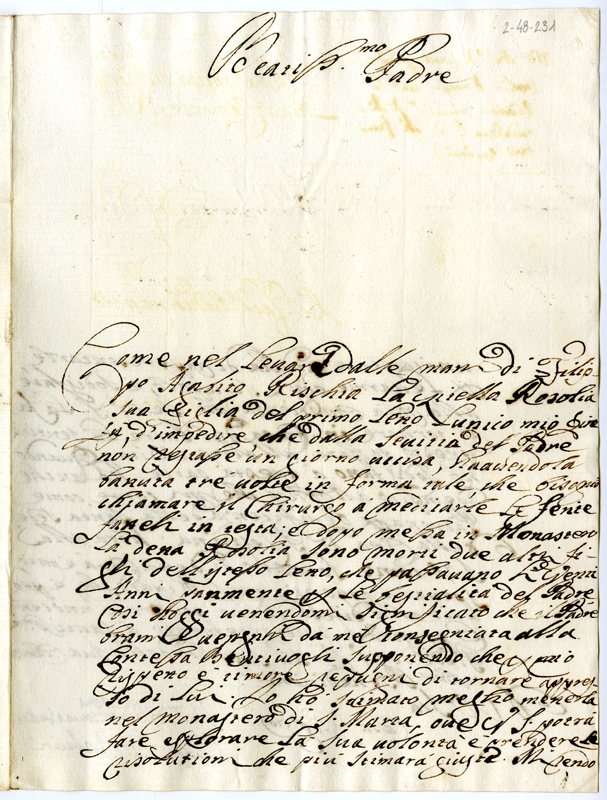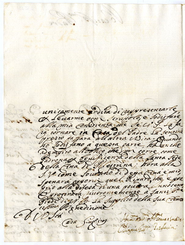 Lettera di Olimpia Giustiniani Barberini a papa Clemente XI (1709)