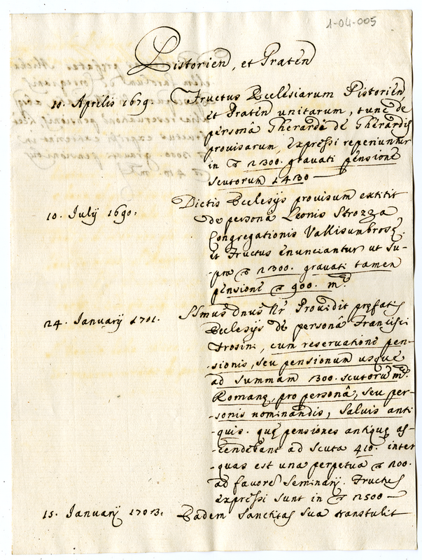 Rendite e pensioni della chiese di Pistoia e Prato.