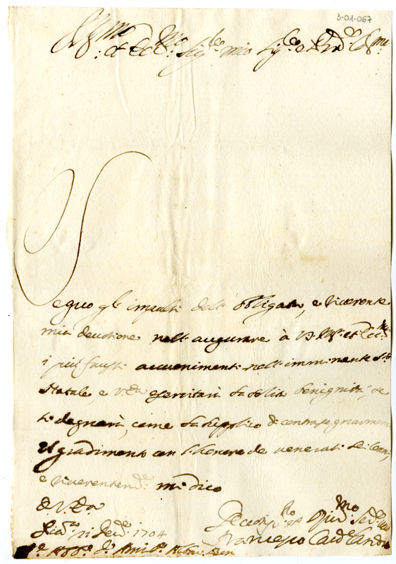 Lettera di Francesco Landi ad Annibale Albani (1704 dicembre 21)