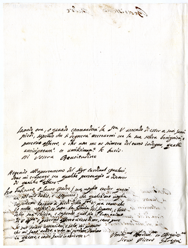 Lettera di Pietro Saragni a Clemente XI (1700-1721)