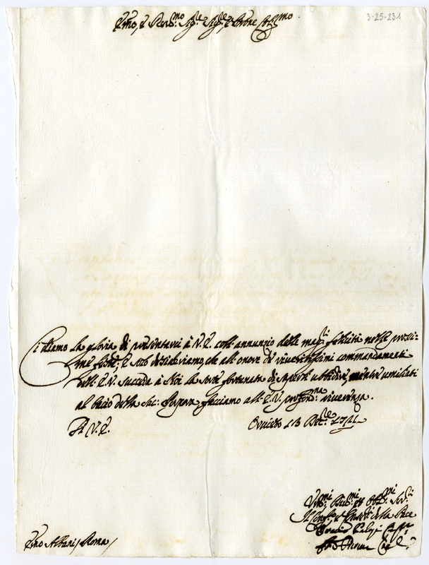 Lettera di Orazio Palazzi al cardinale Annibale Albani (1721 dicembre 13)