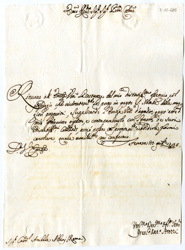 Lettera di Francesco Antonio Strozzi al cardinale Annibale Albani (1725 novembre 30)