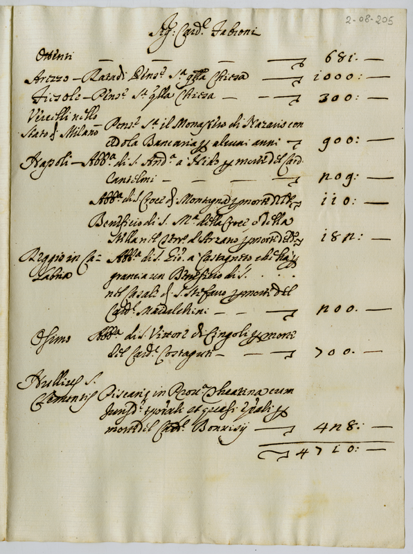 Benefici e pensioni riservate al cardinale Fabroni in varie località (1706)