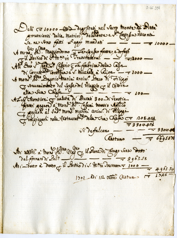Conto delli scudi 10000 moneta che sono nel Monte di Pietà, e pagamenti fatti (1700-1721)