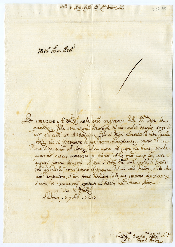 Lettera di fra Giovanni Natal Baldi al cardinale Annibale Albani (1723 dicembre 16)