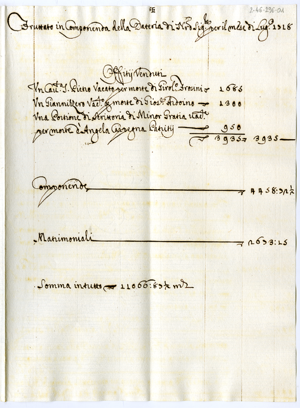 Fruttato in Componenda della Dateria di Nostro Signore per il mese di Luglio 1718
