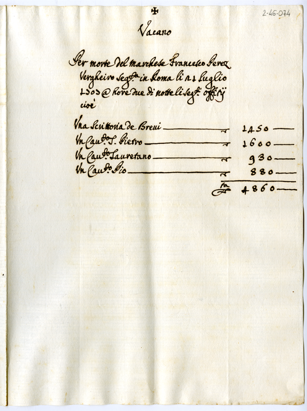 Uffici vacanti per morte del marchese Francesco Perez Vergheiro (1707 luglio 21)