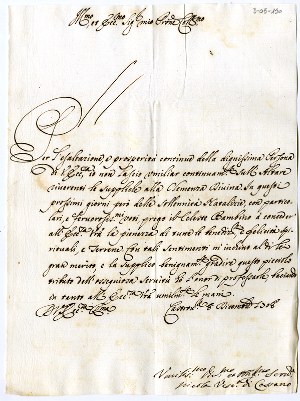Lettera di Nicola vescovo di Cassano ad Annibale Albani (1708 dicembre 8)