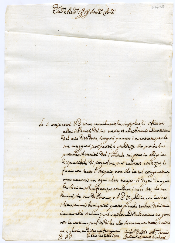 Lettera di Ippolita del Monte Becchetti al cardinale Annibale Albani (1720 dicembre 20)