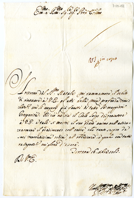 Lettera del vescovo di Tortona al cardinale Annibale Albani (1713 dicembre 16)