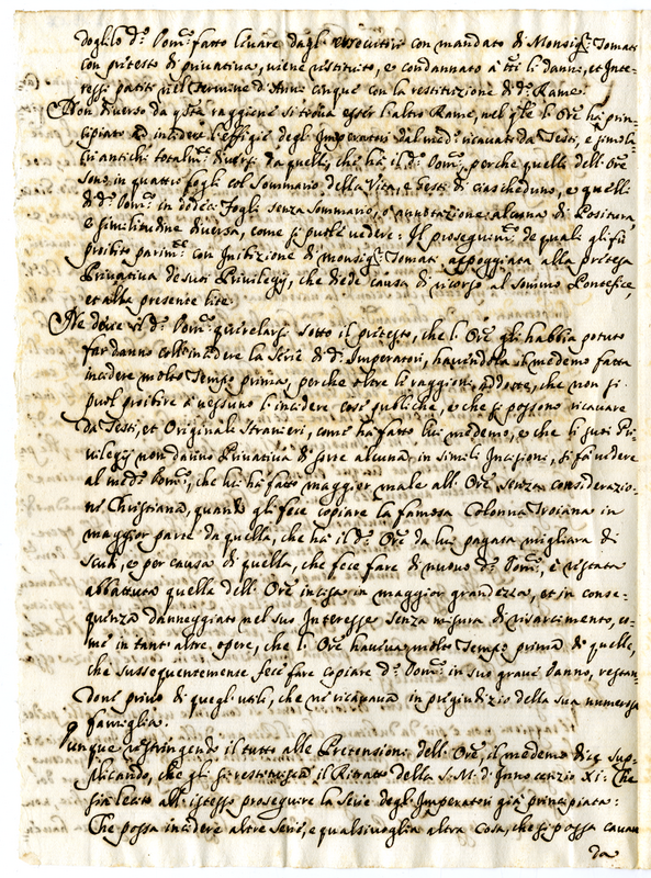 Lettera di Matteo Gregorio Rossi al cardinale Albani (1690-1700)