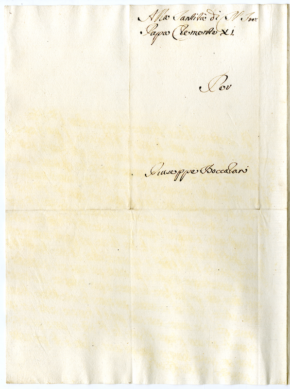 Lettera di Giuseppe Boccalari a Clemente XI (1700-1721)