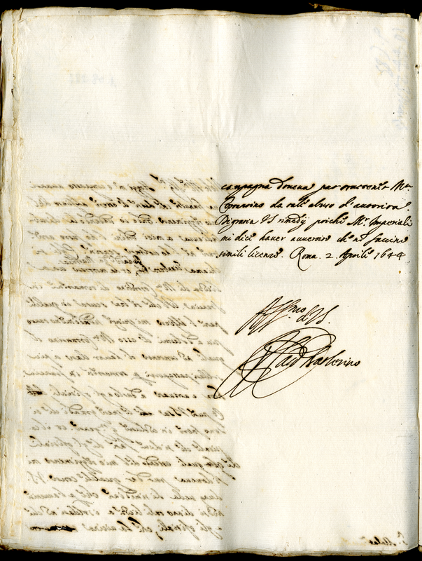 Lettera del cardinale Barberini Francesco senior a Malatesta Albani (1644 aprile 2)