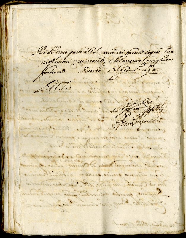 Lettera del cardinale Rapaccioli Francesco Angelo a Malatesta Albani (1644 gennaio 17)