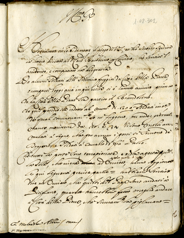 Dà notizia sulla partenza del capitano Brandolino da Città della Pieve, altre notizie